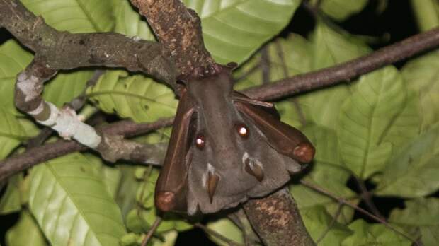 Как вы думаете, чем же питается это инфернальное порождение? Правильно, фруктиками! Кто в здравом уме променяет сладкие тропические плоды на души грешников? В поисках свежего смузи из банана и манго молотоголовый крылан готов пролететь за ночь 10 км. Учитывая, что размер тела зверя 28 см — результат довольно неплохой. Животины живут дружной компашкой от 30 до 120 особей.