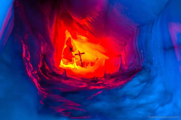 Так-как температура внутри держится на уровне от -0,5 до +0,5 а лед такой плотности что не может пропускать воду, то в полостях могут образовываться целые озера! Когда мы были в леднике, лаз в подобную полость был затоплен, но летом специалисты плавают там на лодках, а аквалангисты погружаются на дно! Ух, и экстремальные же это люди!